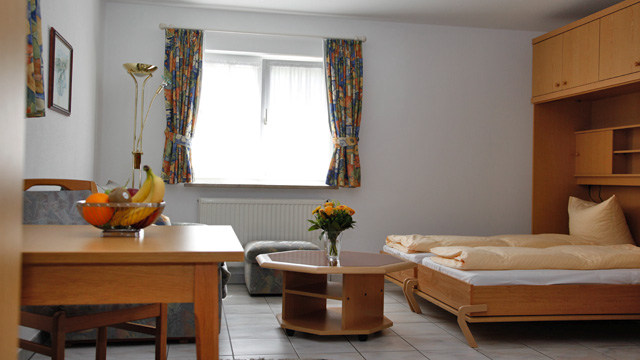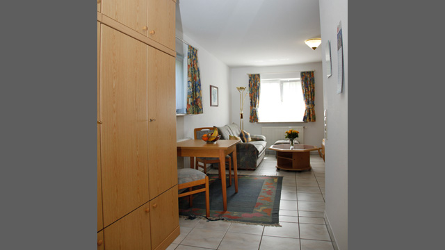 Genießen Sie Ihren Urlaub in komfortabel ausgestatteten Appartements Alle Ferienwohnungen sind ausgestattet mit: Dusche, WC, TV mit SAT-Programmen, Telefondirektanschluss und Safe. Die Küchen sind eingerichtet mit Kochfeld, Kühlschrank, Spülmaschine, Mikrowelle, Kaffeemaschine, Toaster, Geschirr, Töpfe und Besteck.- 1-Zi.App. (Einlieger) - ca. 33 qm